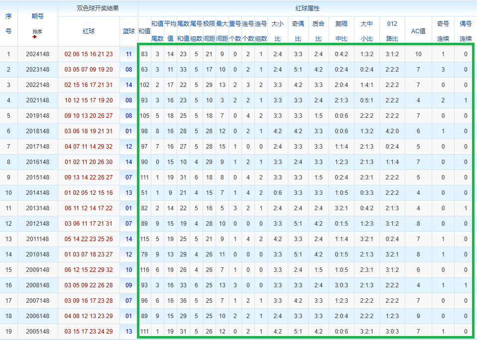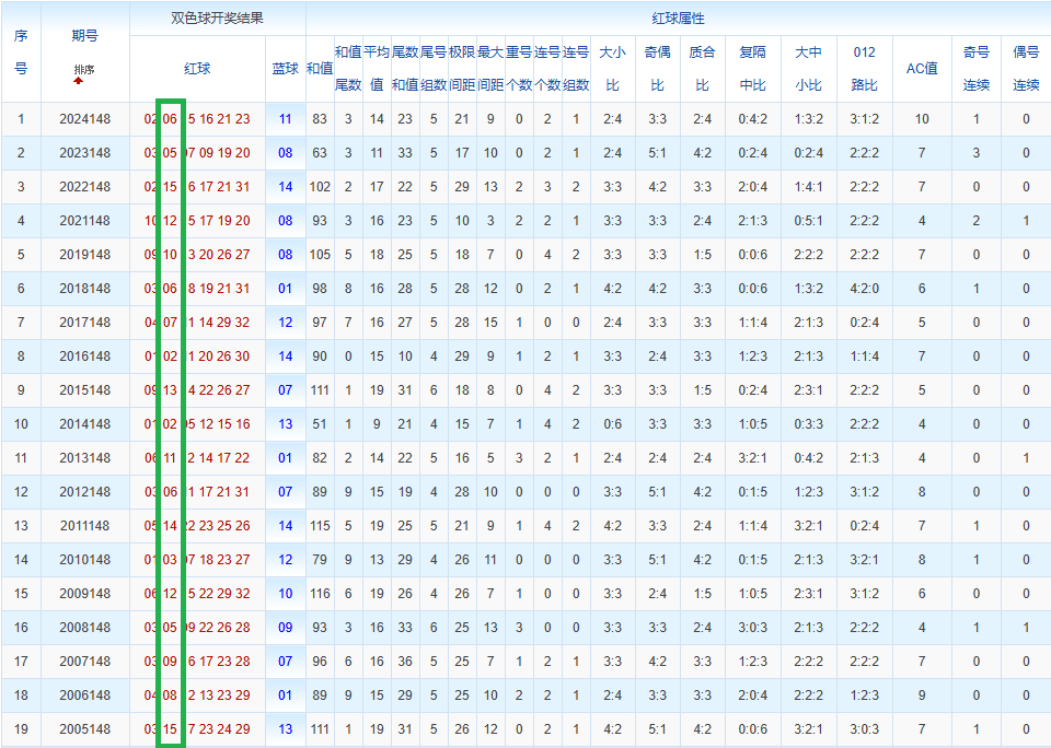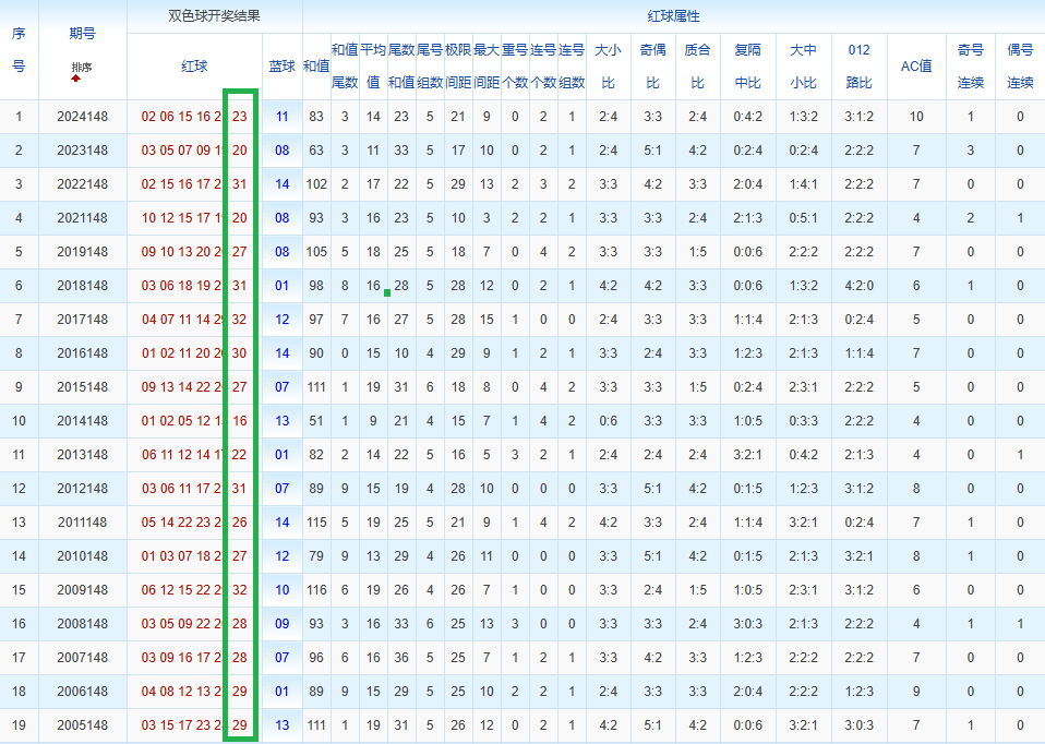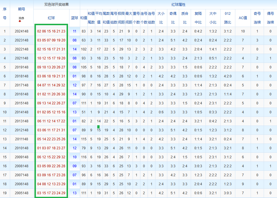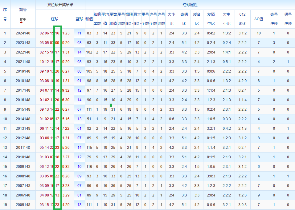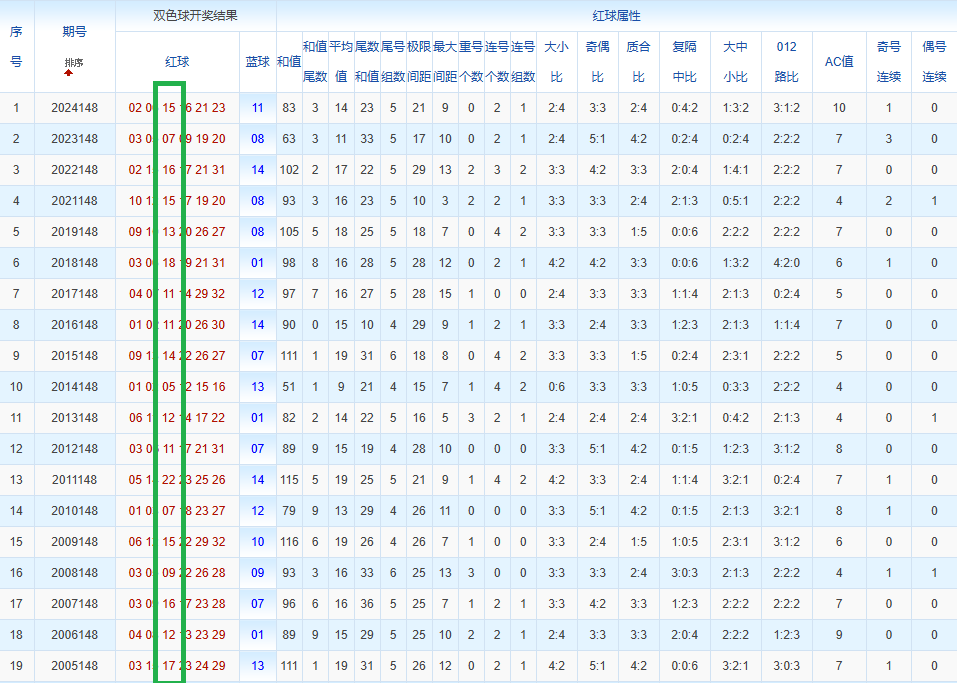 通过观察,我发现双色球往年同期的开奖数据与本期号码之间存在显著关联。具体来说,在红球中,从第一位至第六位,通常会有约4个位置上的数字与往年同期相同位置的号码一致;而蓝球号码中,也有多期开奖结果直接包含了往年同期的数字。因此,我们可以借助往年同期各位置上的号码,作为分析本期开奖情况的重要依据。在此基础上,还可结合往年同期的其他相关条件,进行综合性的号码组合推荐。