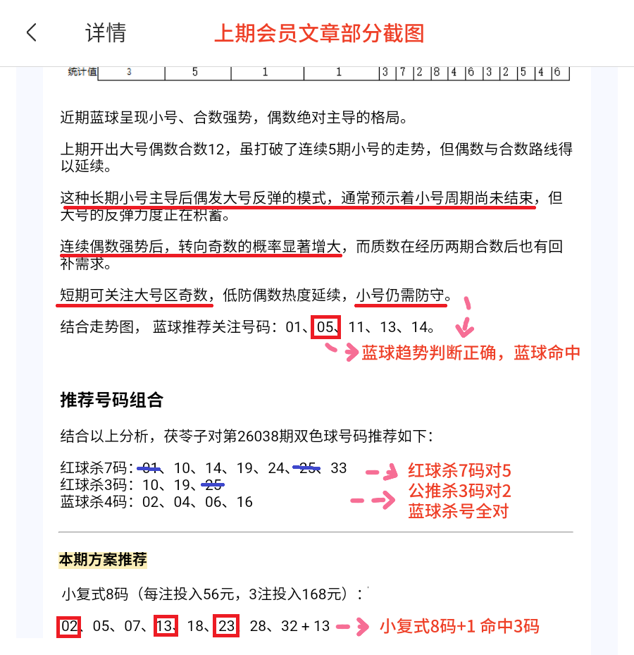 上期红球杀7码对5,公推杀3码对2,蓝球杀号全对。