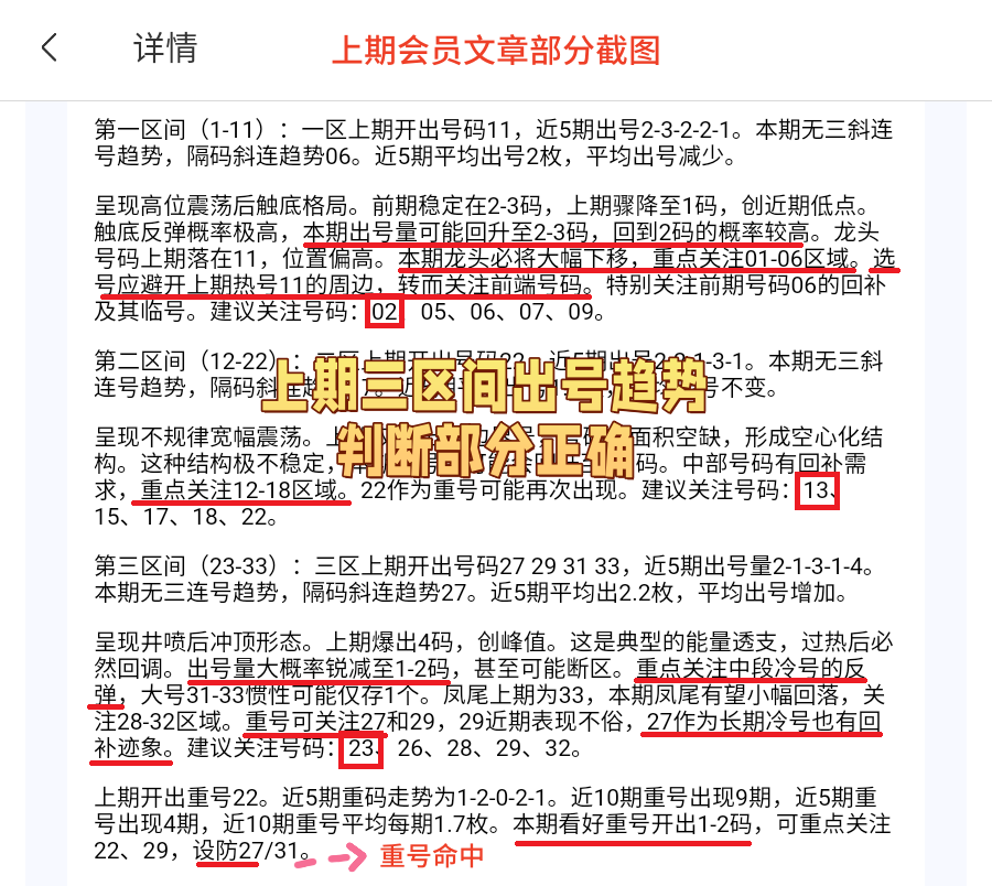 会员文章每个区间给出更详细的分析,说明整体走势的最新趋势,重号和连号均有推荐。