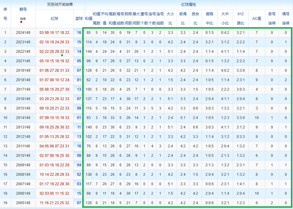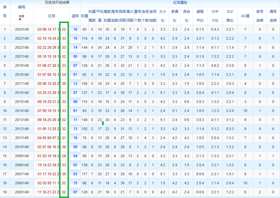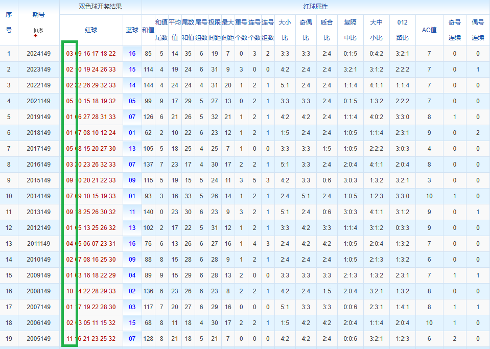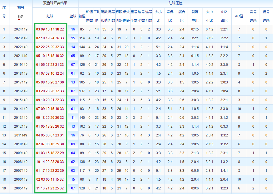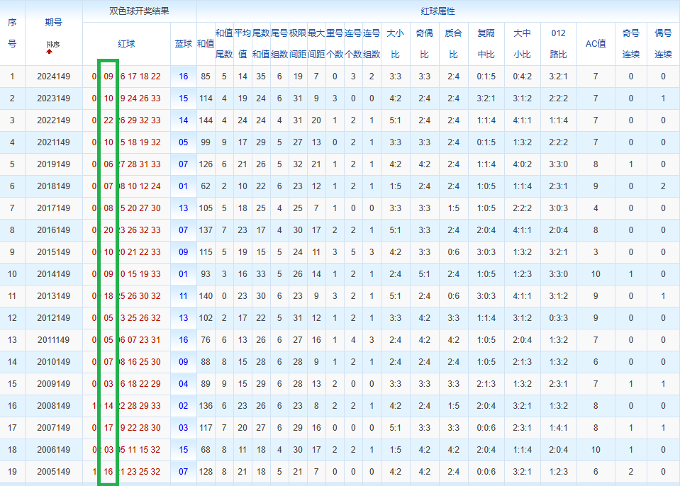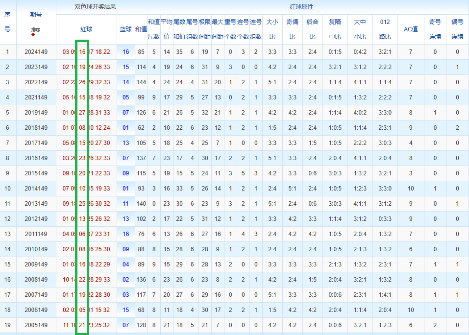 通过观察,我发现双色球往年同期的开奖数据与本期号码之间存在显著关联。具体来说,在红球中,从第一位至第六位,通常会有约4个位置上的数字与往年同期相同位置的号码一致;而蓝球号码中,也有多期开奖结果直接包含了往年同期的数字。因此,我们可以借助往年同期各位置上的号码,作为分析本期开奖情况的重要依据。在此基础上,还可结合往年同期的其他相关条件,进行综合性的号码组合推荐。