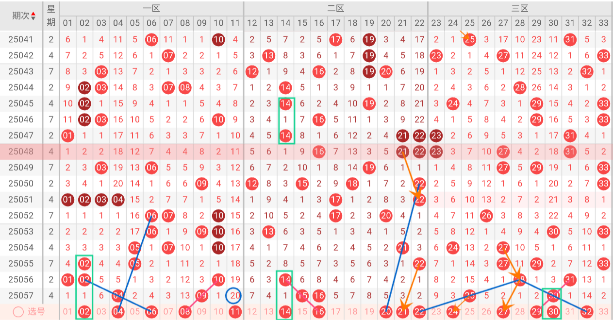 根据以上特点,我们对双色球第25058期进行如下分析: