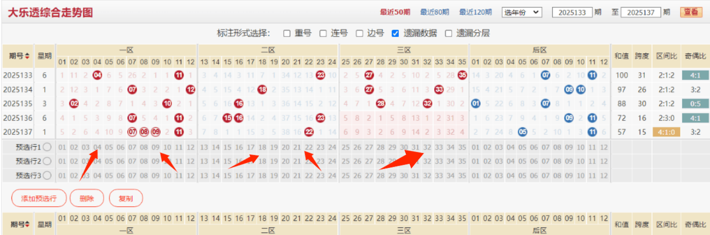 重号方面,上期没有明显的重号特征,但本期需要重点关注重号的出现,尤其是那些在近期开奖中表现活跃、有重复开出迹象的号码。连号组合也是本期的关键,结合区间热度,一区和三区出现连号的可能性较大,要仔细筛选有可能形成连号的数字组合。