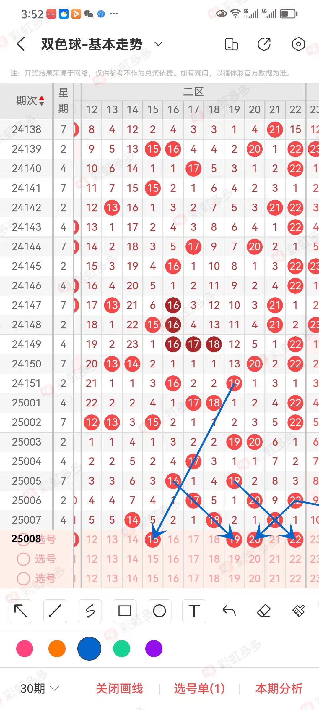 根据上一期二区开出的14.18.21没有隔期号和座号 本期首先关注隔期号20 再分析斜连线号 16.19.22接下来是对称版的号19 至于15属于防守号 本期一区重点关注19.20