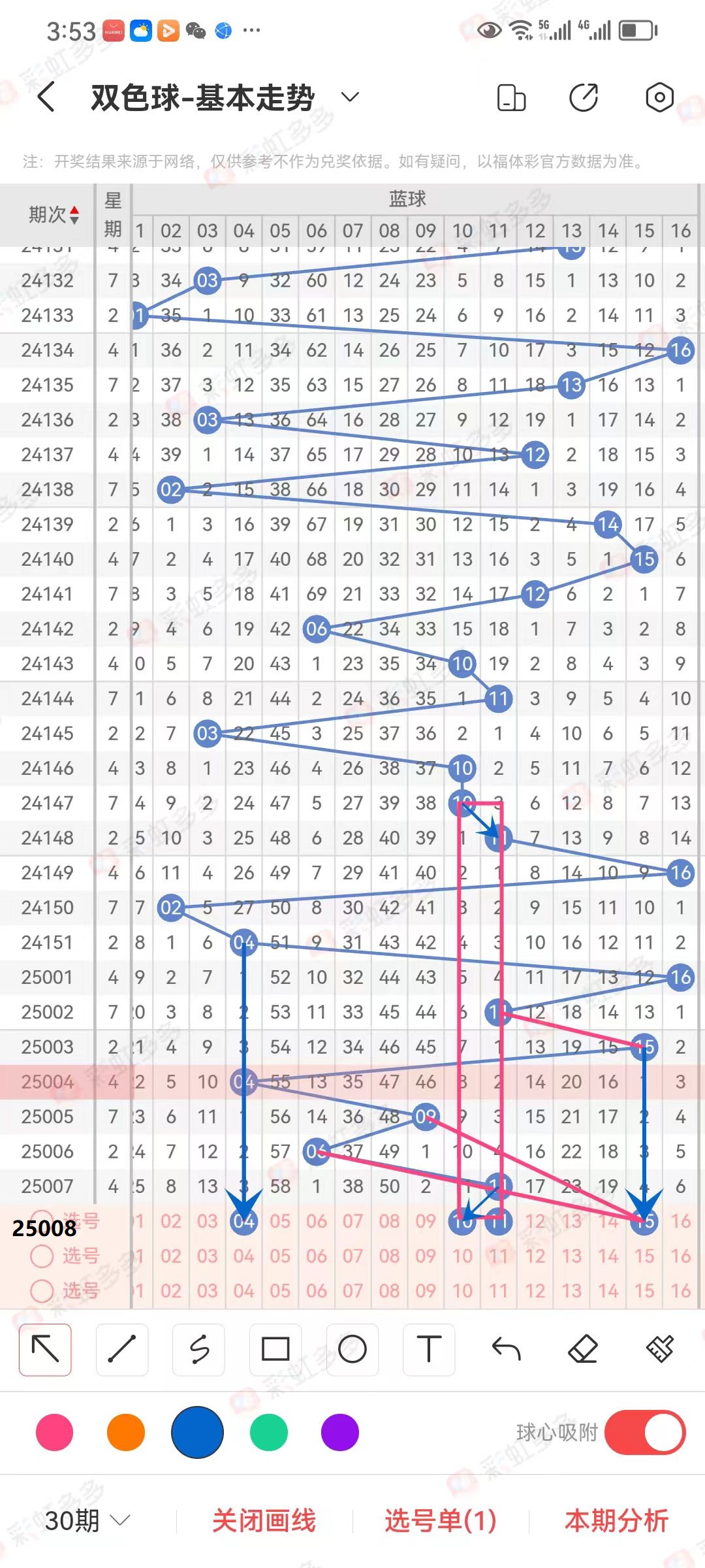 双色球 我比较注重号码组合 把号分为 温隔冷坐妖 奖号多已温号为主 隔期号 和坐号 是应该每期都防守的 冷号和妖号 出现平率相对低一些 但很多彩民都是应为 冷号和妖号 导致不中奖 冷号有冷号的出号特征 一般出大冷号的时候 容易出现5单配1双 或是5双配1单 妖号多为斜连线号 或是 坐3期号 蓝号我是以 1路2路3路来判断 外加结合回头好和冷号 来锁定当期号码 目前中奖率挺高