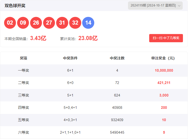 上期双色球开奖号码是:2.9.26.27.31.32--14