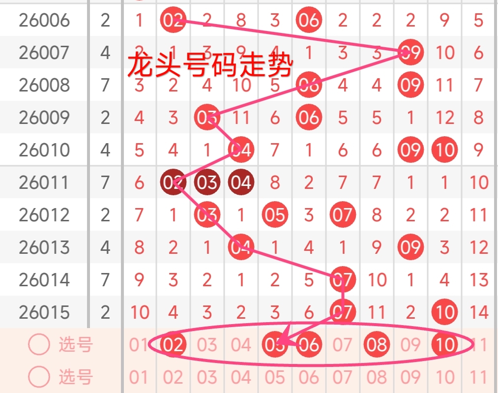 龙头号码走势分析: