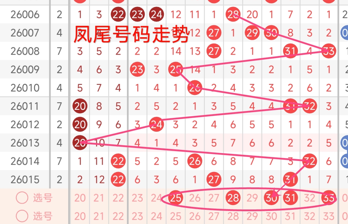 凤尾号码走势分析: