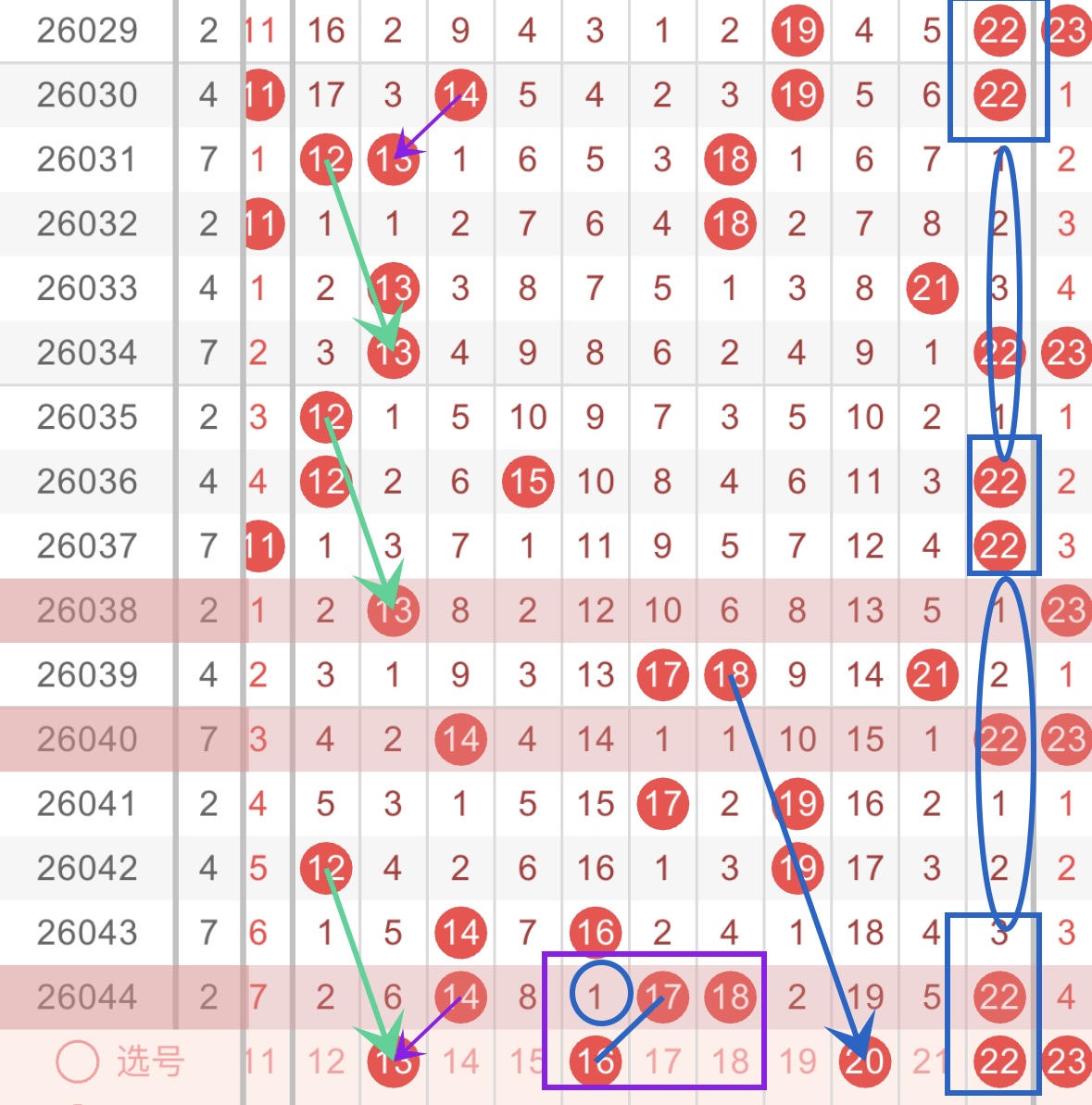其中16和22可以作为胆号来进行参考。