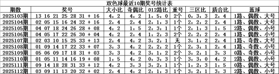 上期奇偶比为4:2,奇数活跃,近10期奇偶比为32:28,奇数红球活跃,其中奇数红球热