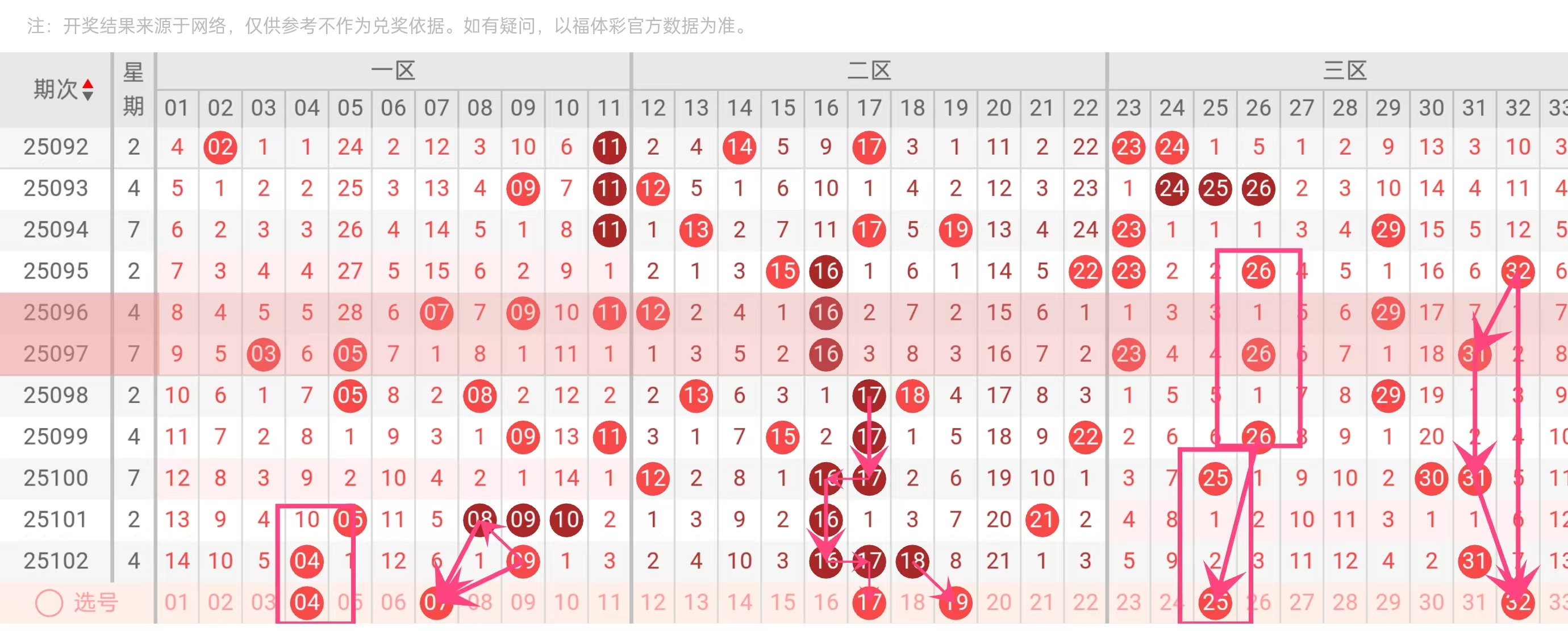 17(热号):二区核心号,近10期出现4次,与16/18形成稳定出号区