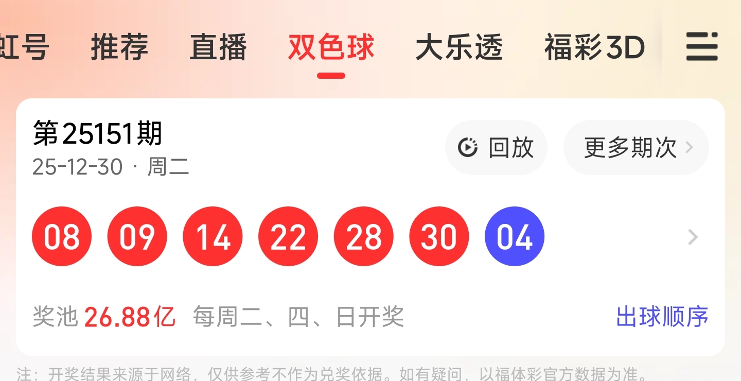 25151期双色球文章中推荐中命中914303个红球,命中蓝球4