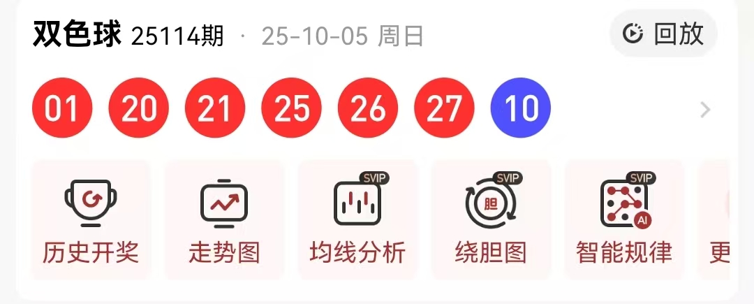 先来回顾一下第2025114期的双色球开奖结果:01 20 21 25 26 27+10以下是对本期数据的详细分析:
