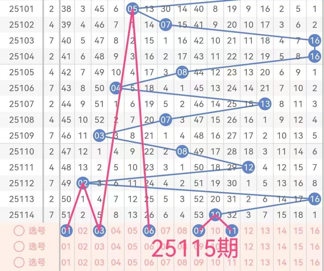 后区号码范围为01-16,根据历史数据分析,后区号码的出现具有一定的规律性。以下是对后区区间的具体分析: