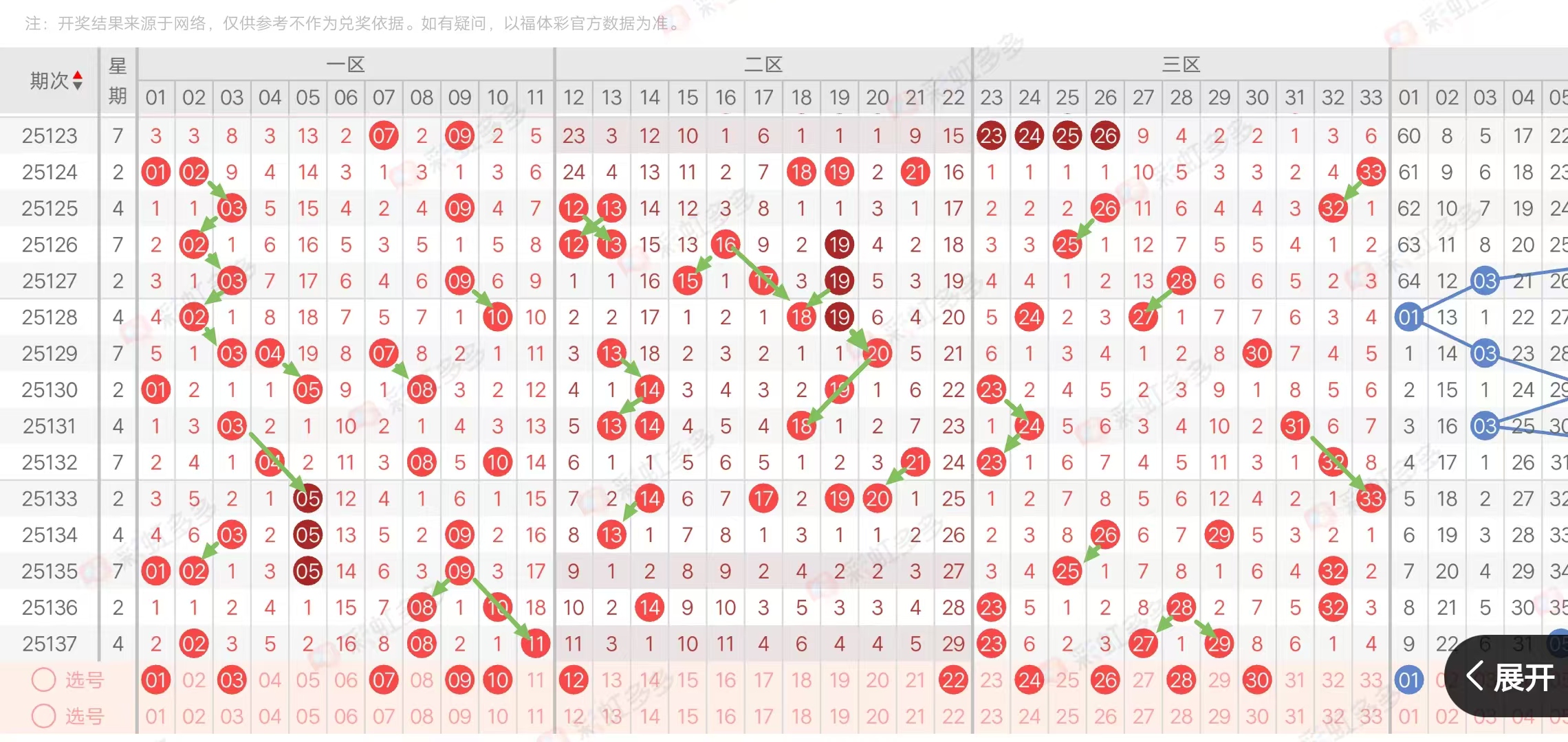 (三区:一区1-11,二区12-22,三区23-33)上期三区比3:0:3