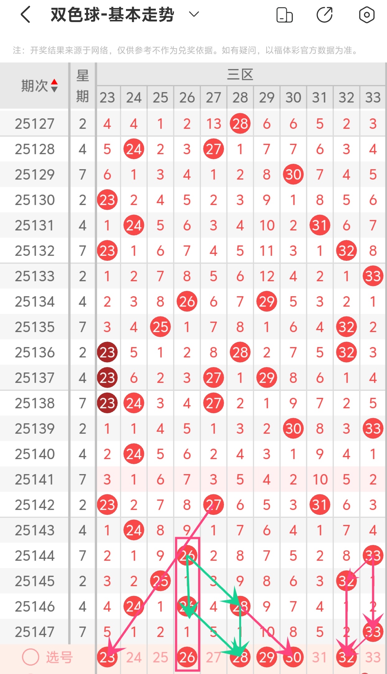下面是我对2025148期福彩双色球的分析和预判,希望通过我的分析能让大家今晚大红!福彩双色球上期开奖号码如下图: