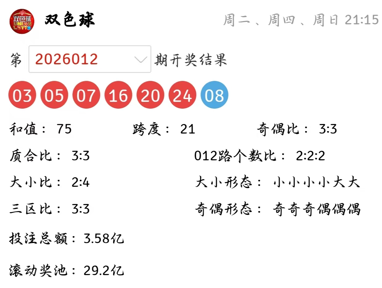 双色球上期(第2026012期)开奖详情