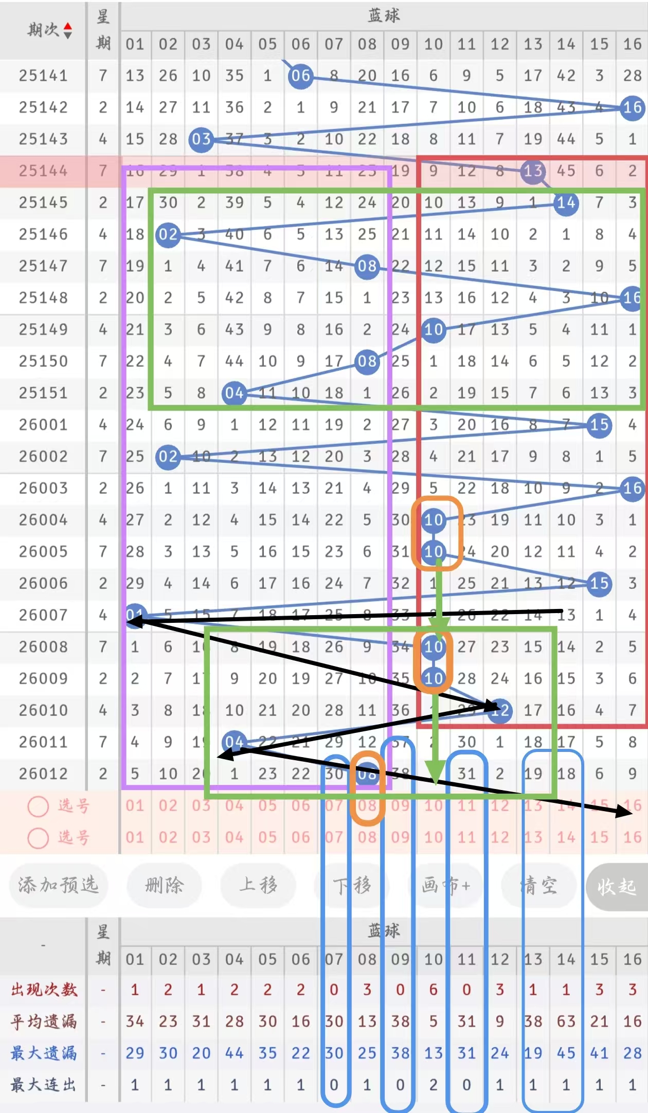 冷号:连续10期以上没有开出的号