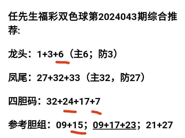 24043期双色球精选15+5大底(直播间可看21码围号):