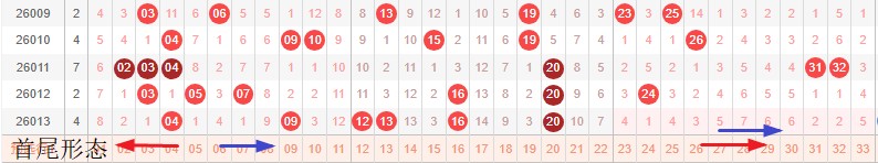 如图所示:首尾制约平衡组范围依次为:推推拉,缩缩? 本期形态范围优先选择红色拉伸首尾。由于上期号码已经进入新走势第5期,目前处在新走势第1期,利用常规起号形成拉伸还是右推就是走势正反方向。
