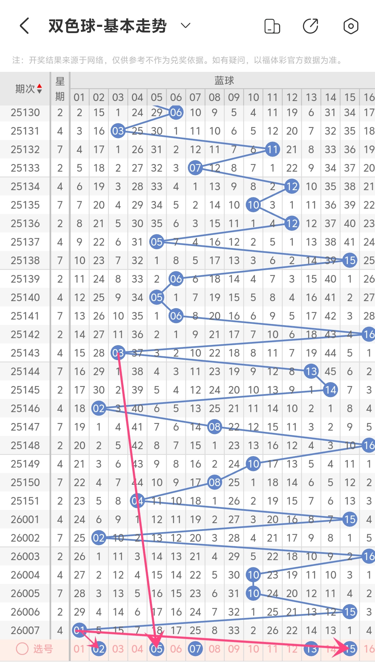 下面双色球的蓝球走势图分析: