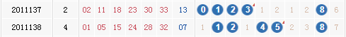 从图中可以看出,01238尾号组合,历史一共开出13期,属于历史开出尾号中比较热的尾号组合。