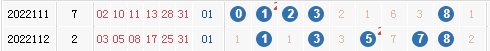 上次开出是22111期,下期开出的尾号组合是13578,那么咱们选择本期的尾号组合,就可以排除以13开头的尾号组合。