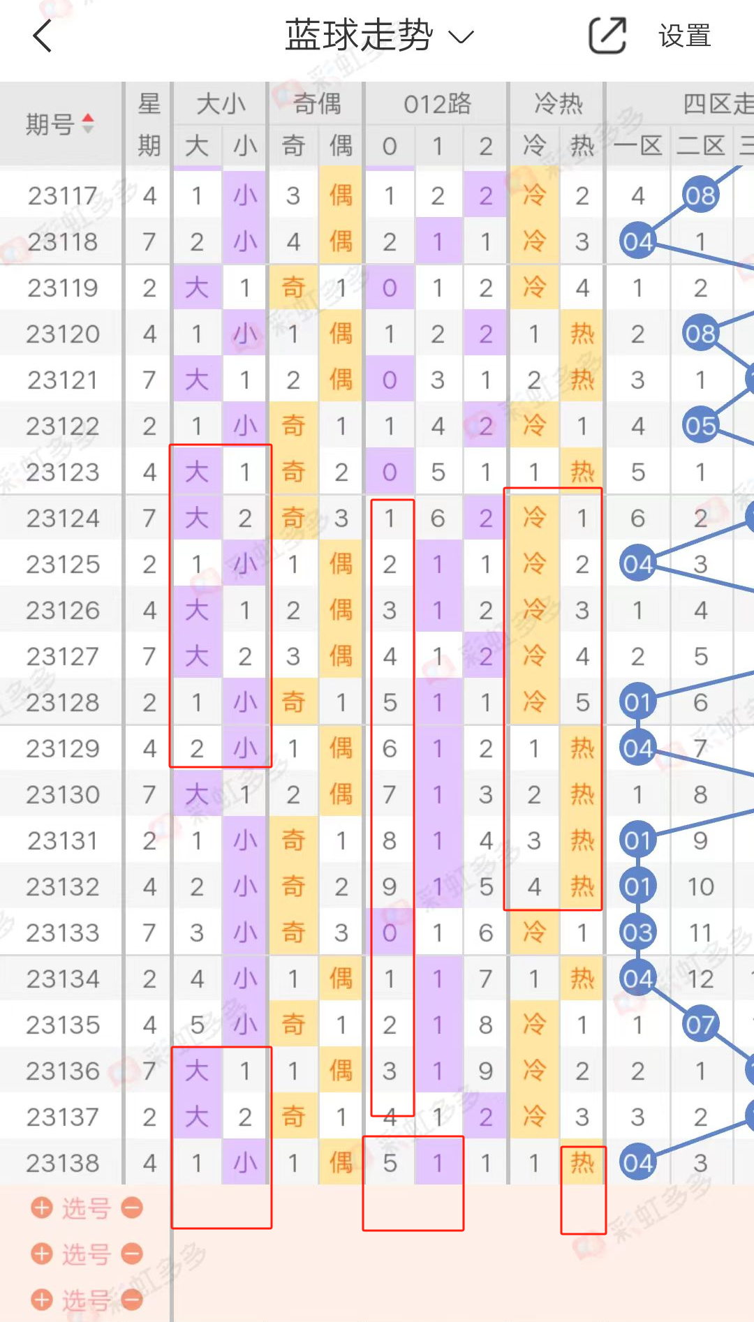 上期直播间给出的独蓝是03,看好回小码蓝球正确,看好热码正确。在03和04之间选择错误。