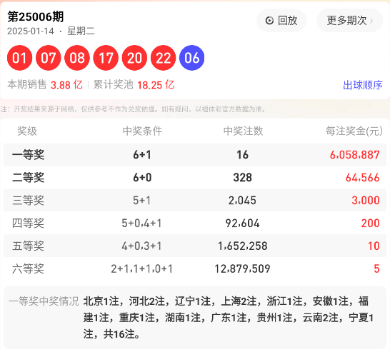 上期回顾:双色球006期开出红球号码为: