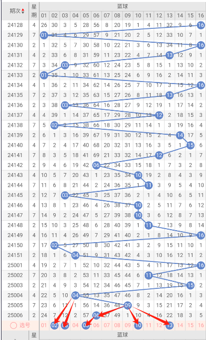 根据走势图近10期的走势看,蓝球在001期开出16蓝球之后,3大1小1大1小,再看下近10期的蓝球中冷码有回补的趋势,这种趋势规律本期判断极有可能开出中冷码大号,本期防中冷码蓝球03小号,蓝球本期重点关注02.05.10.13
