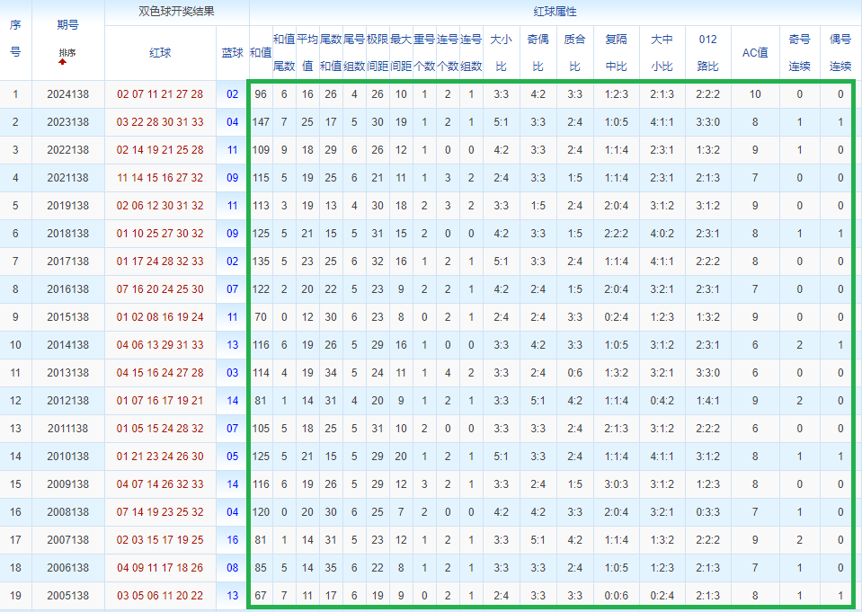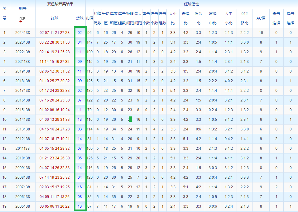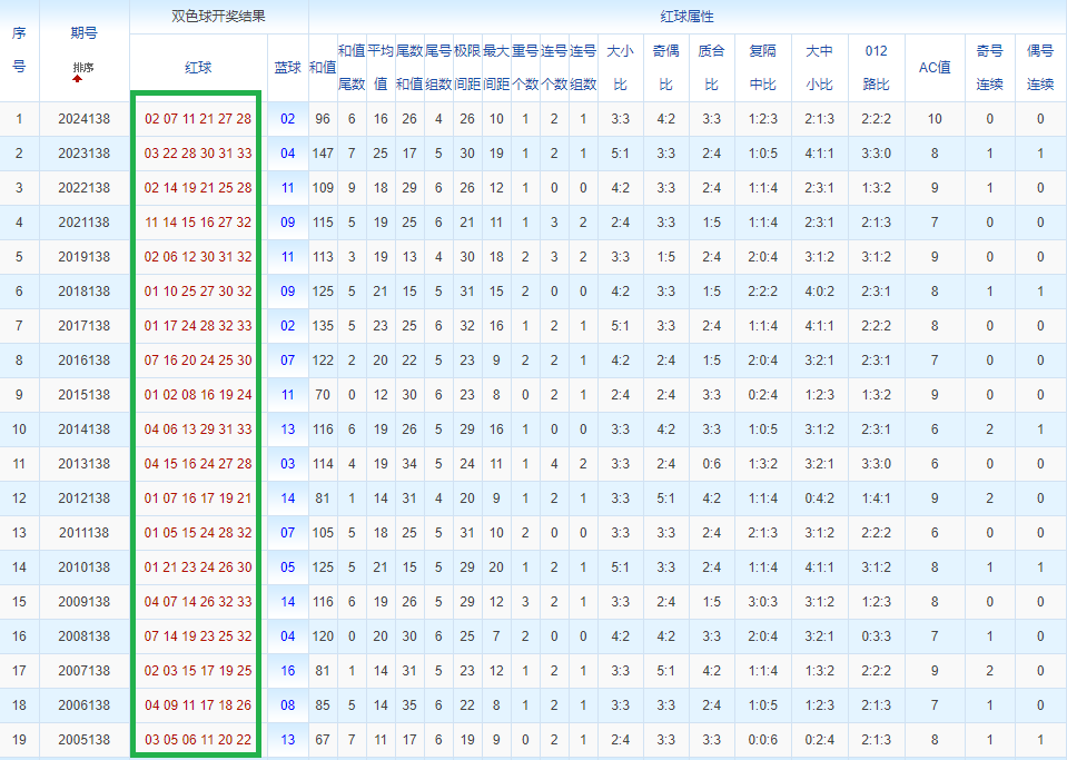 通过观察,我发现双色球往年同期的开奖数据与本期号码之间存在显著关联。具体来说,在红球中,从第一位至第六位,通常会有约4个位置上的数字与往年同期相同位置的号码一致;而蓝球号码中,也有多期开奖结果直接包含了往年同期的数字。因此,我们可以借助往年同期各位置上的号码,作为分析本期开奖情况的重要依据。在此基础上,还可结合往年同期的其他相关条件,进行综合性的号码组合推荐。