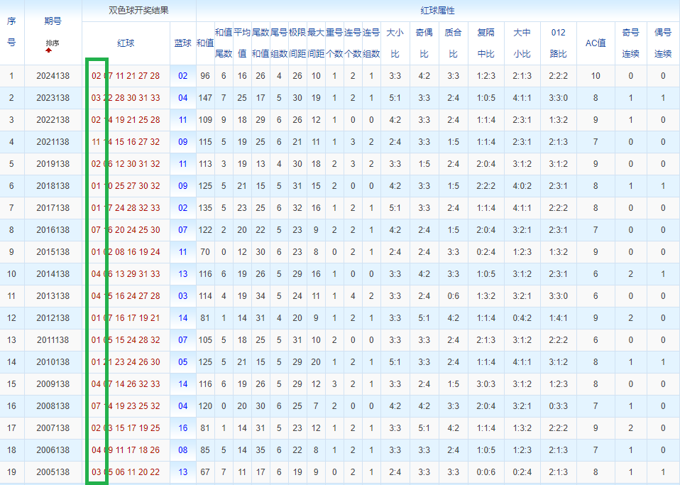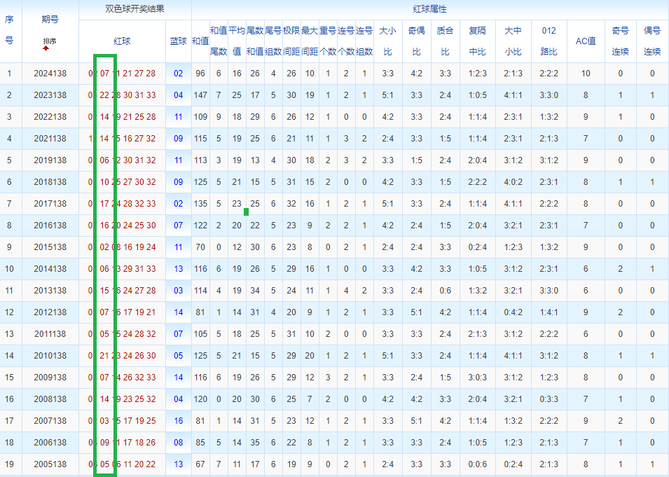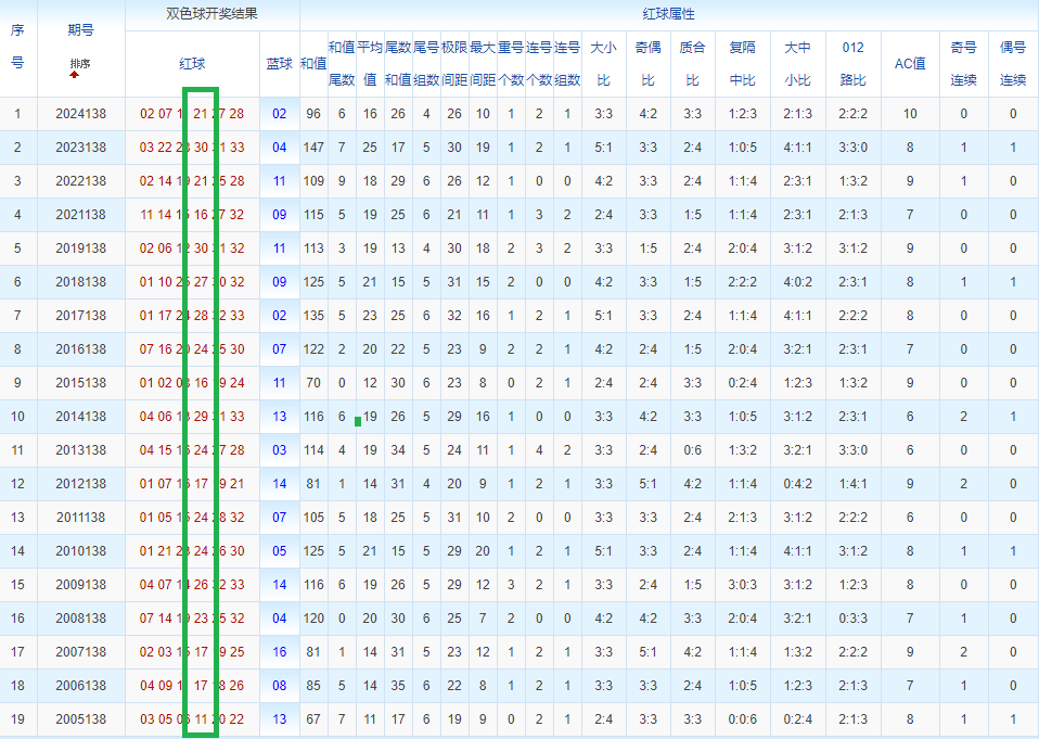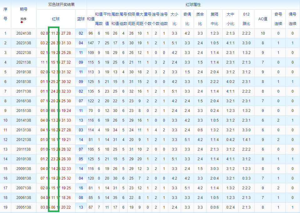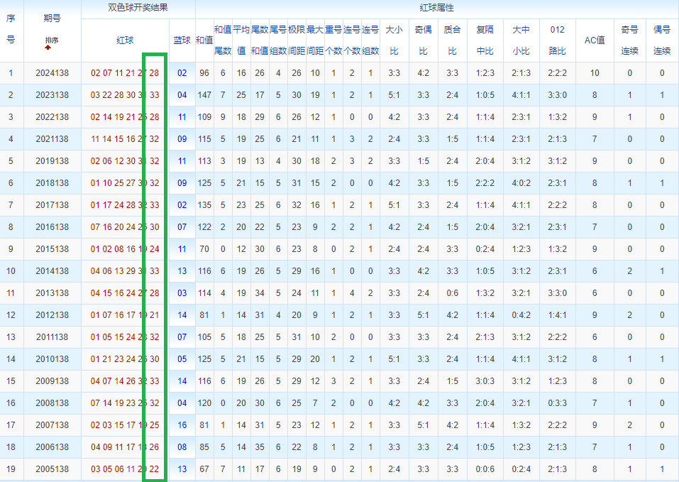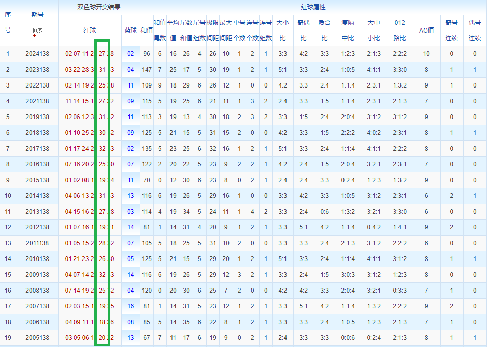 往年同期中选取出现次数靠前的数作为我们的分析对象,其数据有:32 28 24 01等