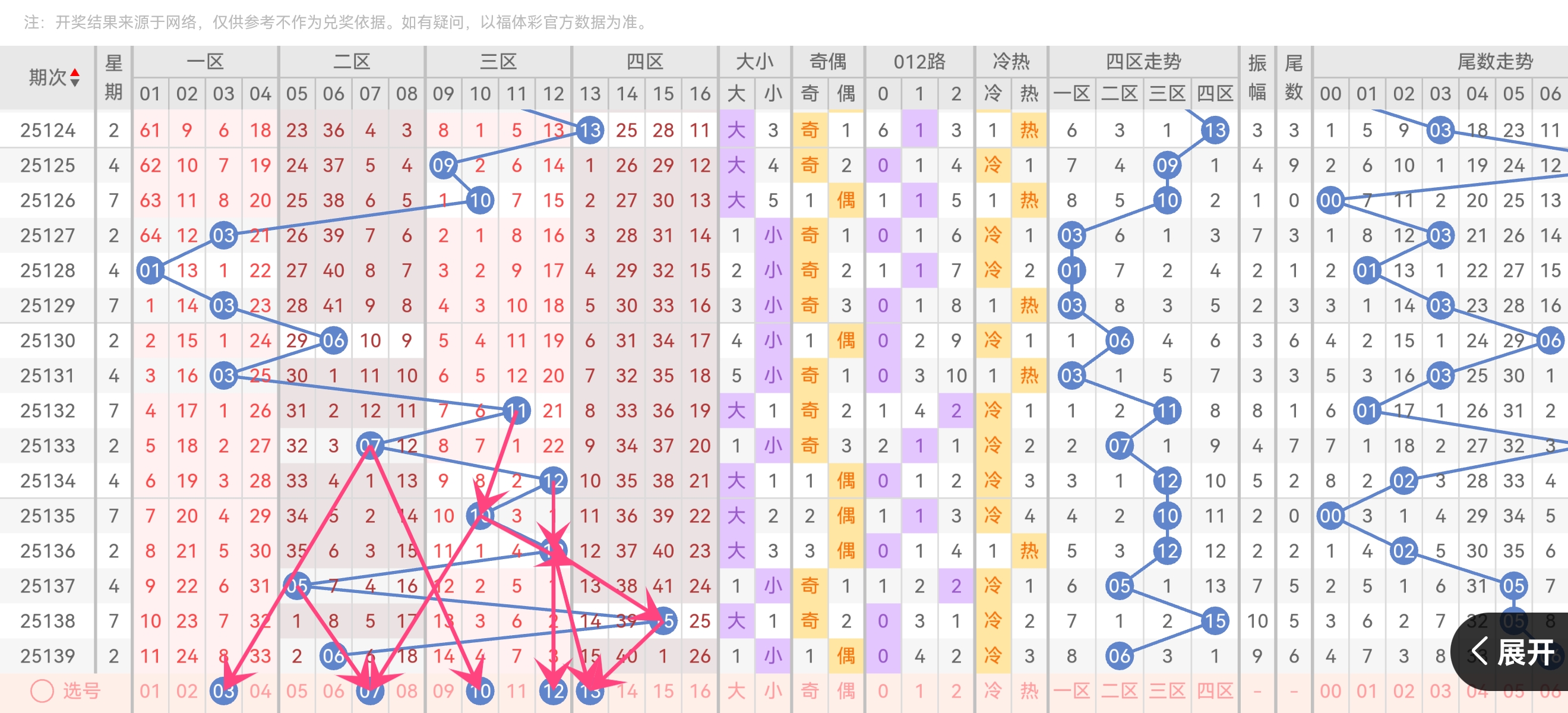热码(遗漏≤9期) :其余12码均热,重点关注0/1路 小遗漏号。