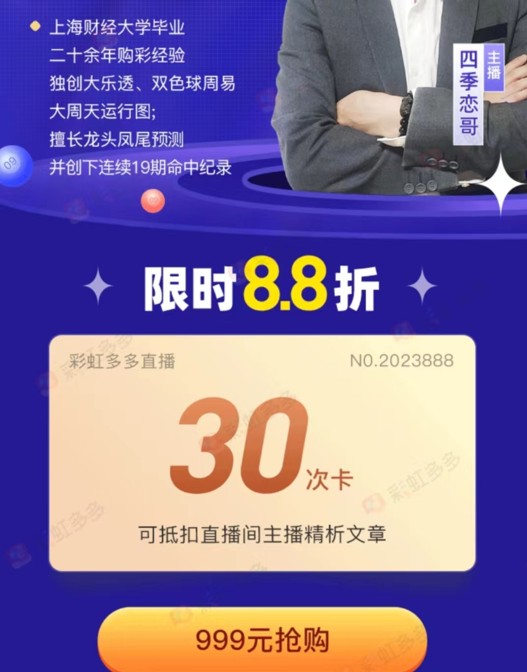 如果你想看大乐透和双色球,还不入四季恋哥的VIP圈?圈内都是彩界精英人士,高端彩圈彰显你的气质