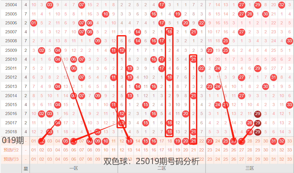 先介绍下上期开奖号码的基本情况,红球奇偶比:4:2,区间比:2:2:2,012路比:4:1:1,通过上期号码简单介绍,分享下25019期号码球个人认为的出号可能,供大家参考!