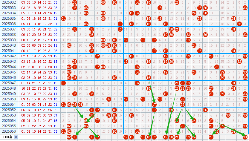 回顾上期25056期开奖01 02 10 14 28 31 + 03,其中一小区01-11出3个,二小区12-22出1个号,三小区23-33出2个!
