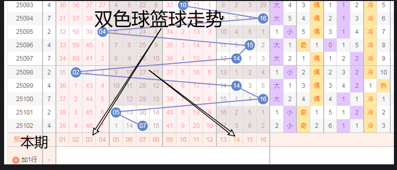 条件 1:排除近三期(100-102 期)出现 2 次以上的号码 近三期重复号码统计:16(3 次)、17(3 次)、09(2 次)、31(2 次) 初始 14 码中无上述重复号码,无需排除