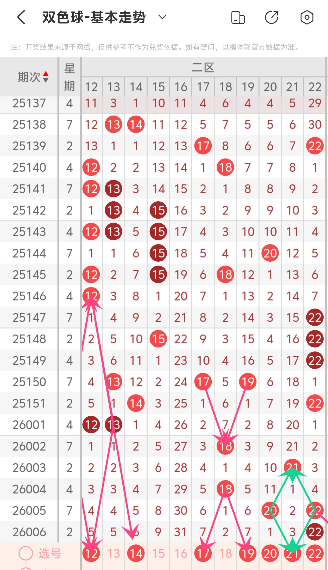 下面是我对2026007期福彩双色球的分析和预判,希望通过我的分析能让大家今晚大红!福彩双色球上期开奖号码如下图: