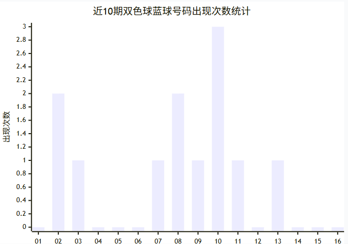 众数:出现频率最高的数字。数字10出现了3次,是近10期中最频繁出现的蓝球号码。