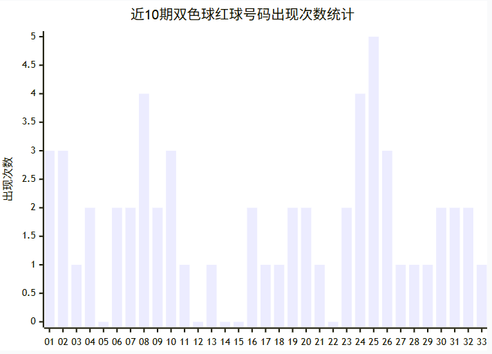 众数:出现频率最高的数字。计算发现,数字25出现了5次,是近10期中最频繁出现的红球号码。其他出现较多的数字包括24(4次)、26(4次)和8(4次)。