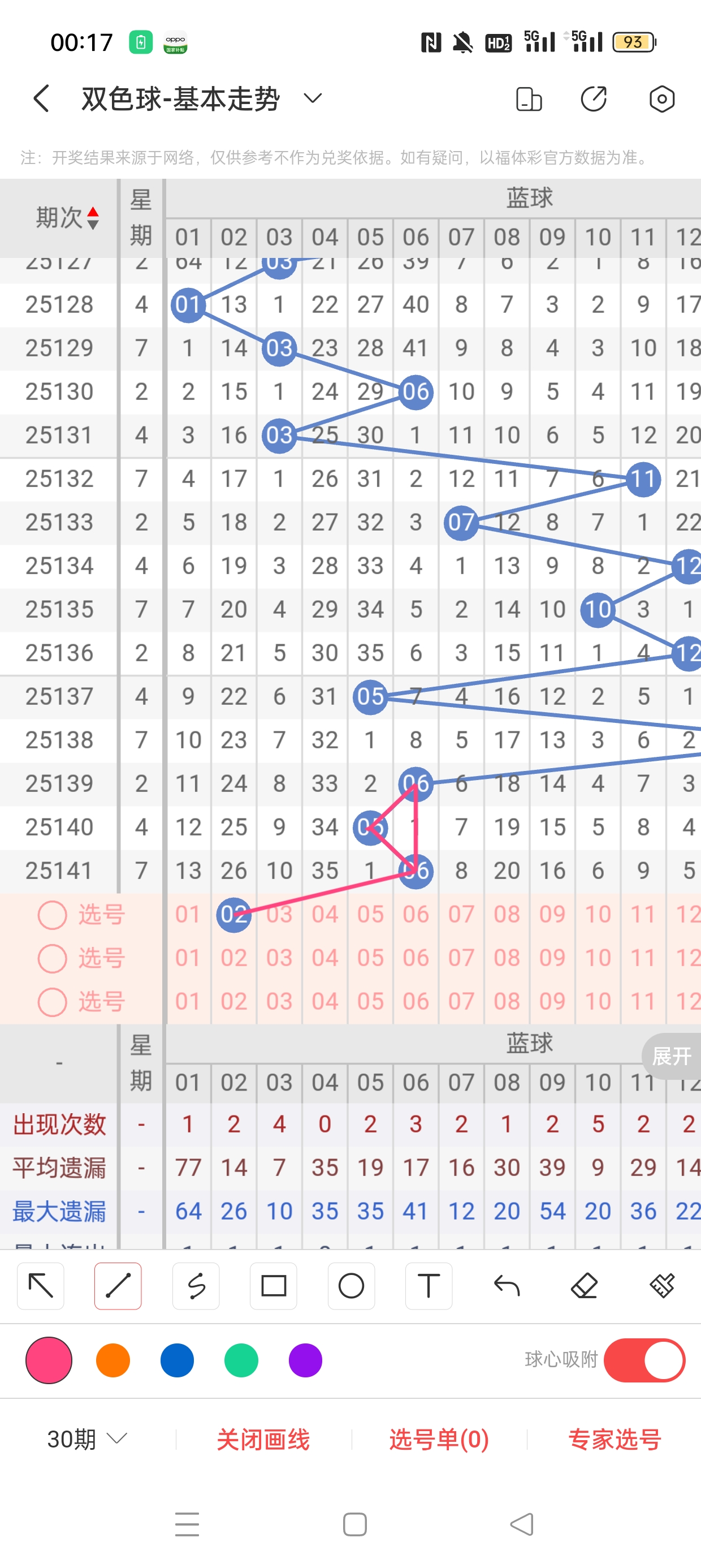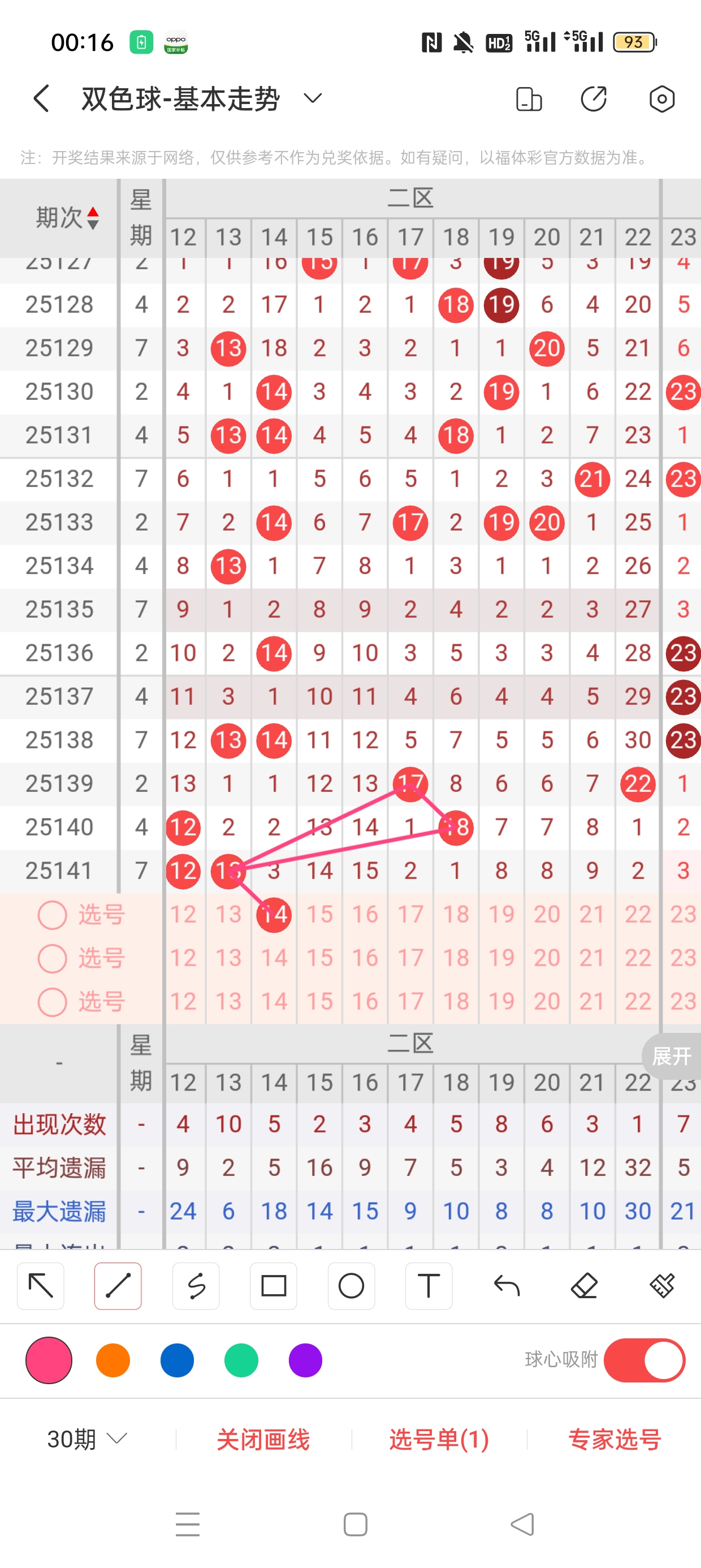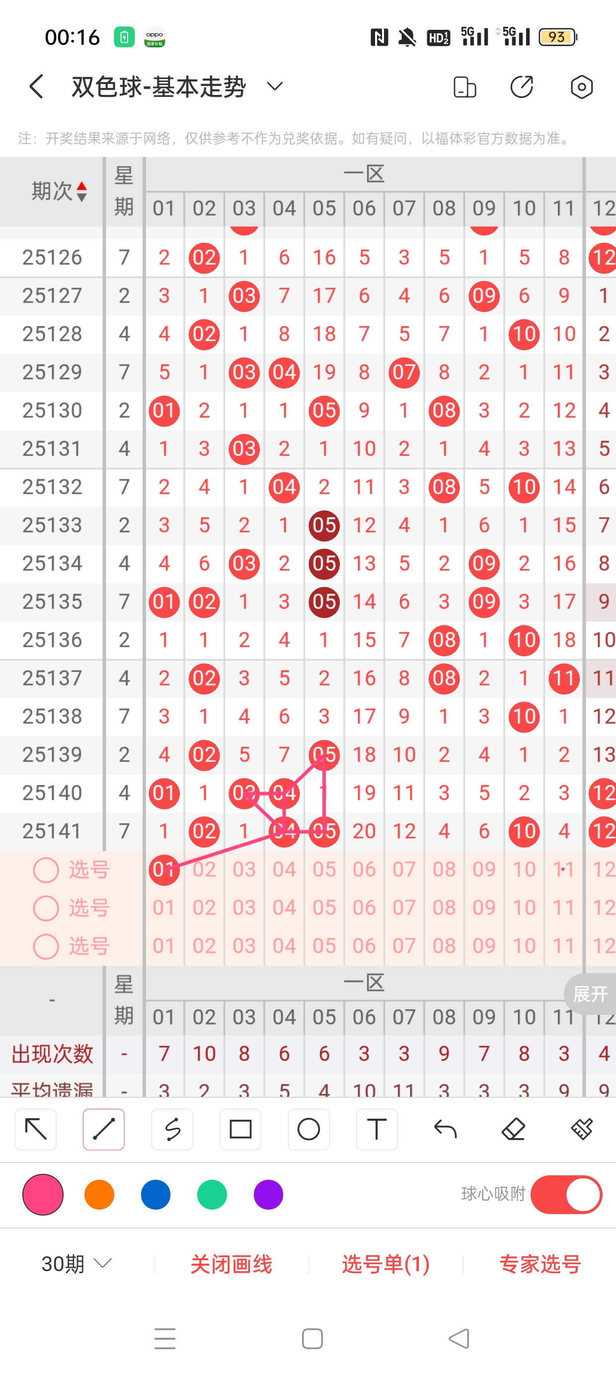 后区(1-16)近133期本区012路36:46:56,1/2路热度高,本期着重0路。2已遗漏26期,与6之间呈现向左遗漏递减态势,需防。