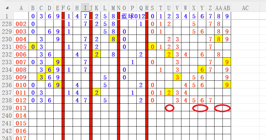 如上图4,012路分析012路,本期重点10路。重点     03 04 05 06 07
