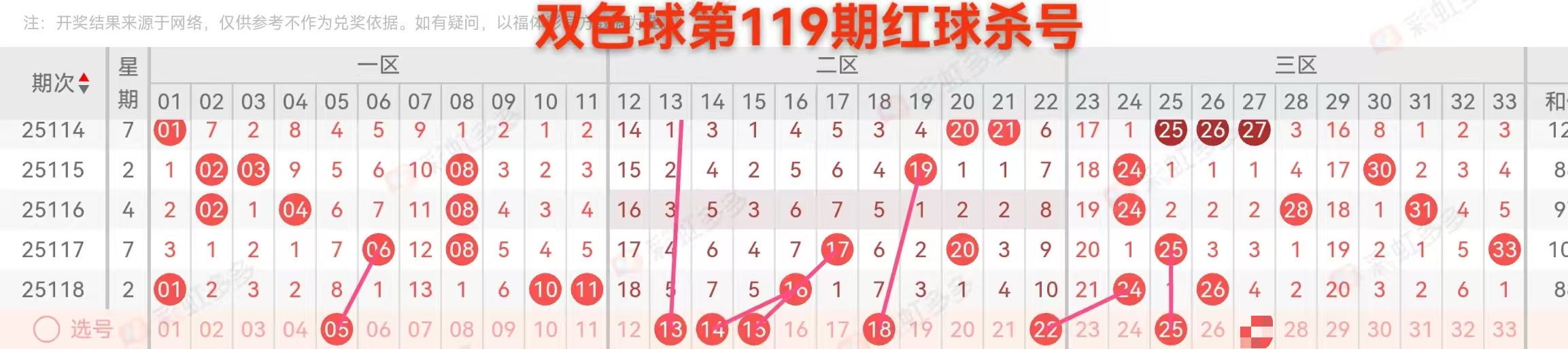 25119期双色球红球杀号(直播间可看选号条件+围红蓝+杀蓝):