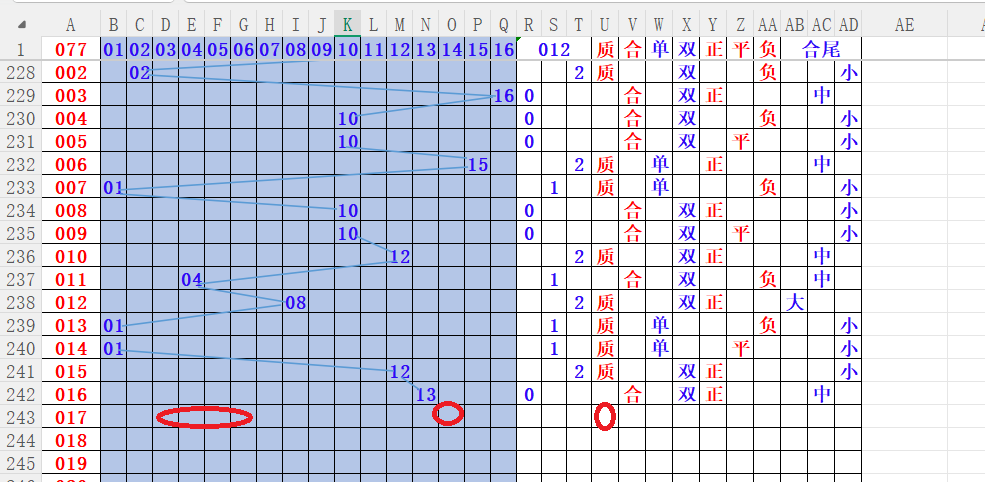 如上图4,质合分析,质数连续两期,本期重点合 03 04 05 06 14 关注 。