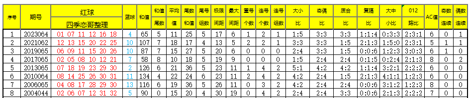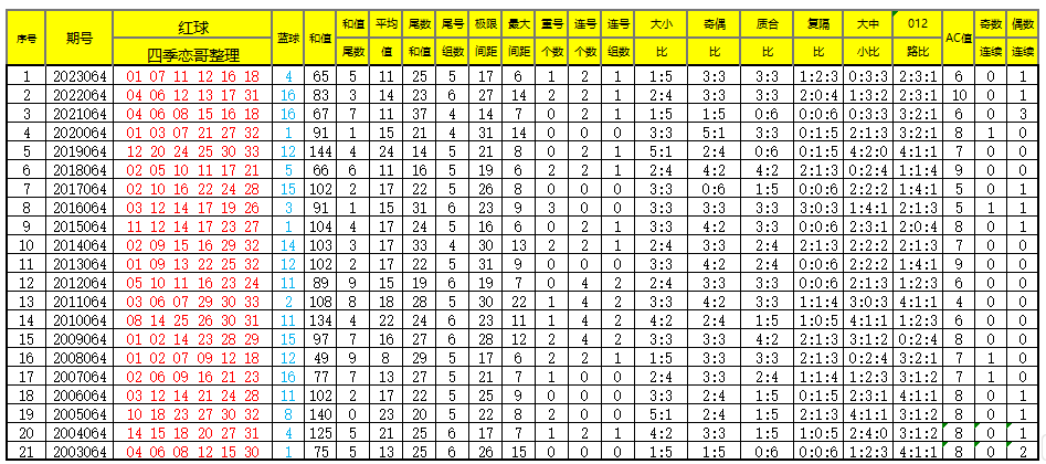 附:每年064期开奖号各类数据及6月6日同期开奖号各类数据,供大家参考!大佬和彩友们速速拿走~