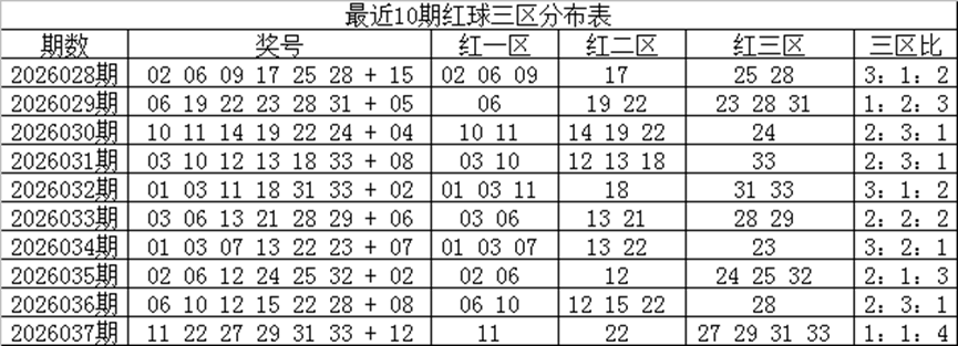 关键词六:红球三区分布: