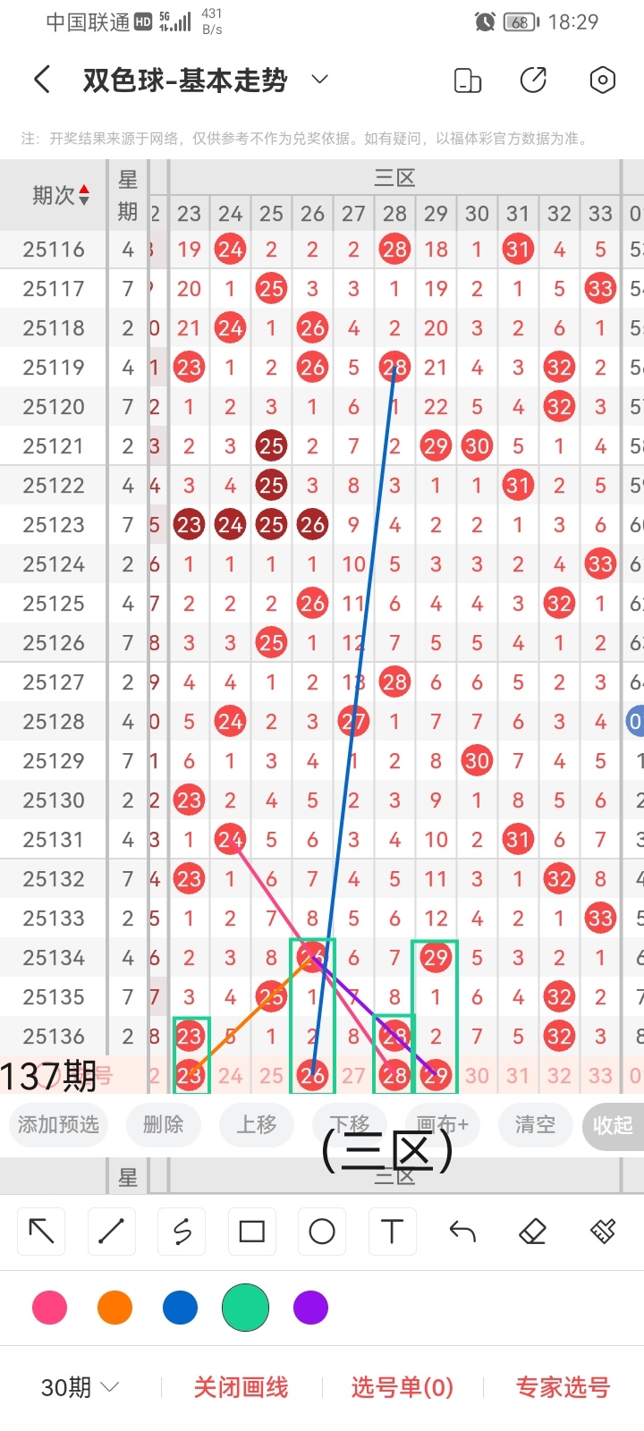 通过以上对上期的简单回顾,下面进入双色球第2025137期(下面简称本期)的选号分析: