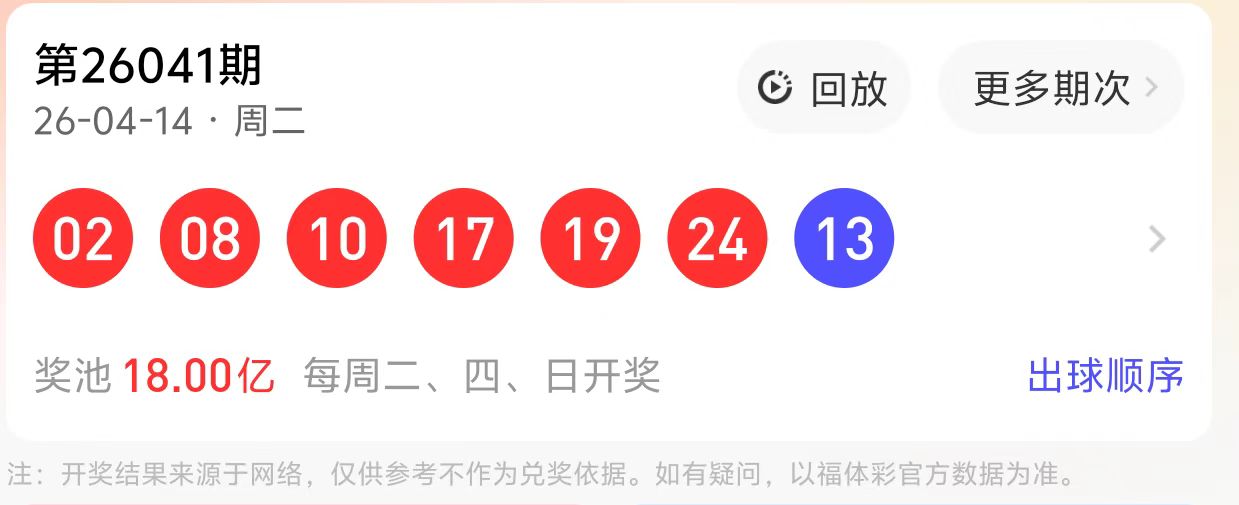 2026041期开奖结果