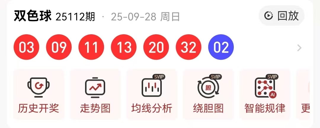 先来回顾一下第2025112期的双色球开奖结果:03 09 11 13 20 32+02,以下是对本期数据的详细分析: