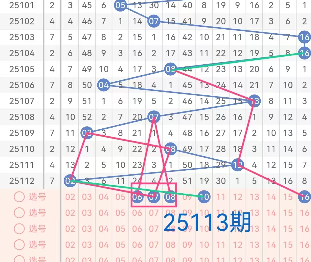 7.蓝球分析:上期蓝球开出02,本期重点关注蓝球号06、07、08、10、16