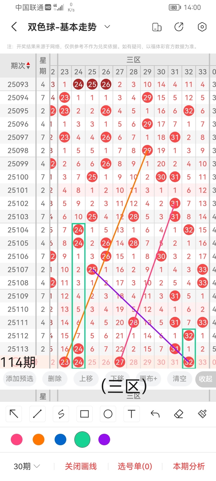 通过以上对上期的简单回顾,下面进入双色球第2025114期(下面简称本期)的选号分析: